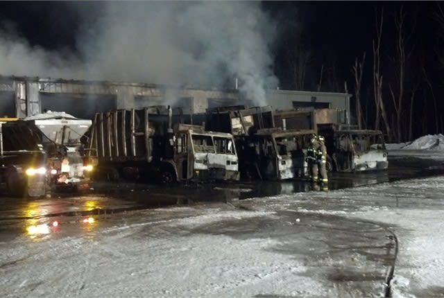 In a memo to the City Council, Public Works Director Jeff Baumann said a patrol officer refueling his vehicle at midnight saw smoke coming from the building, alerting authorites to the fire. The value of the loss of the six recycling/refuse vehicles is $365,200.