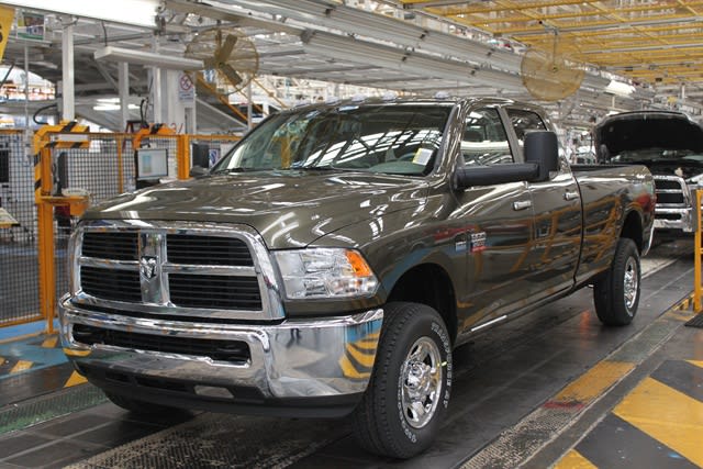 One of Chrysler's Ram 2500 CNG pickup trucks rolling off the assembly line.