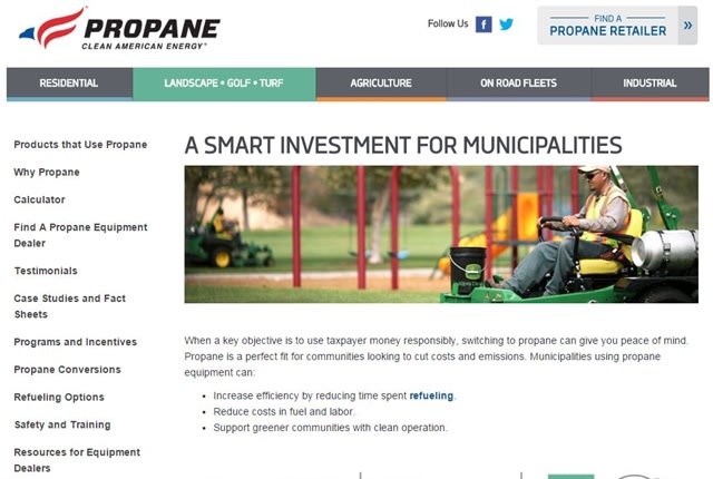 The Propane Education & Research Council has added a new page to its website solely focused on helping municipalities and public organizations learn how propane maintenance equipment can improve their grounds maintenance operations. At www.propane.com/municipality, visitors will find resources explaining how propane mowers increase department productivity, lower fuel costs, and reduce emissions.