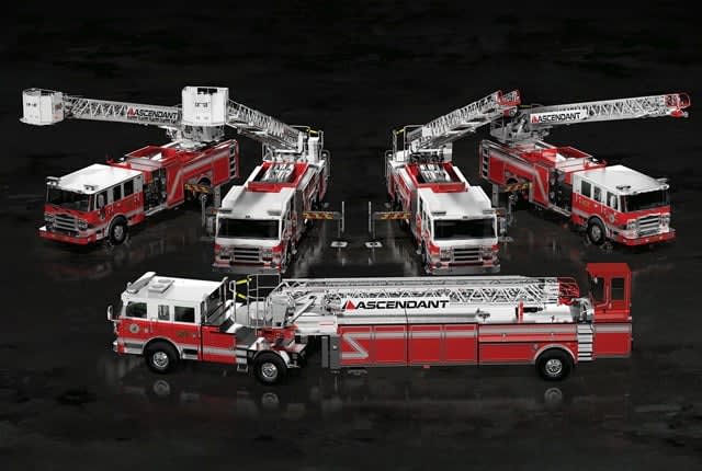 Pierce Manufacturing introduced four all-new Piece Ascendant aerial apparatus configurations, including 107-foot single rear axle aerial ladder, a 107-foot tandem rear axle aerial ladder, a 107-foot tractor-drawn aerial, and a 110-foot single rear axle aerial platform. Photo courtesy of Pierce