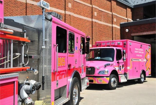 Prince George's County firefighters added a pink ambulance to their fleet to go along with a pink pumper truck to raise awareness for breast cancer this month.