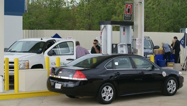 Pictured is one of 13 vehicles the Caddo Parish Sheriff's Office, nearby, has converted to run on CNG at the grand opening facility. Photo via Facebook/Time-It Lube.