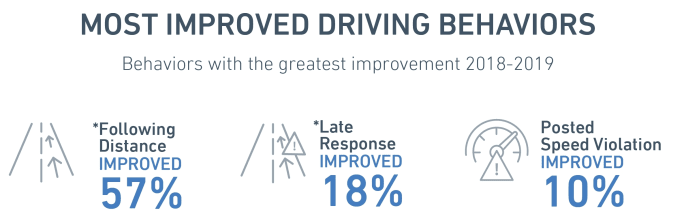 Behaviors may appear on both the "most prevalent" and "most improved" lists. This demonstrates that even with significant improvement, fleets and drivers must stay vigilant and maintain awareness to keep those behaviors trending downwards.