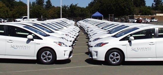 Toyota Prius models will replace Sacramento County's fleet of light-duty cars that are no longer economical to own. Photo courtesy of Sacramento County General Services Fleet Division.