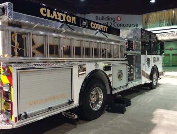 One of the new fire apparatus was on display to at the Fire-Rescue International Convention. Photo via facebook/Clayton County Fire & Emergency Services