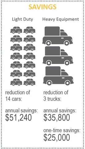 The City has saved money through pooling both its light-duty and heavy-duty vehicles.