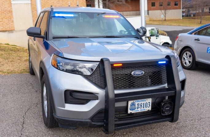 A Virginia State Police patrol vehicle is seen with the department's new emergency lighting configuration.