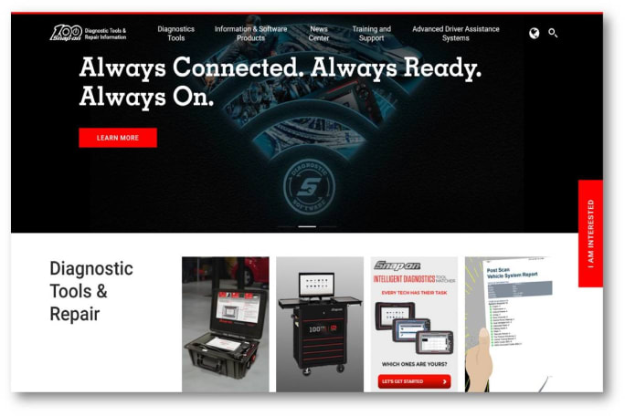 Visitors to the website will notice the homepage is redesigned with a sleek, new look using dropdown menus for viewing diagnostic tools, information and software products, news, and training and support. The homepage also highlights Snap-on Intelligent Diagnostics and other areas of high interest, with links for visitors to learn more.