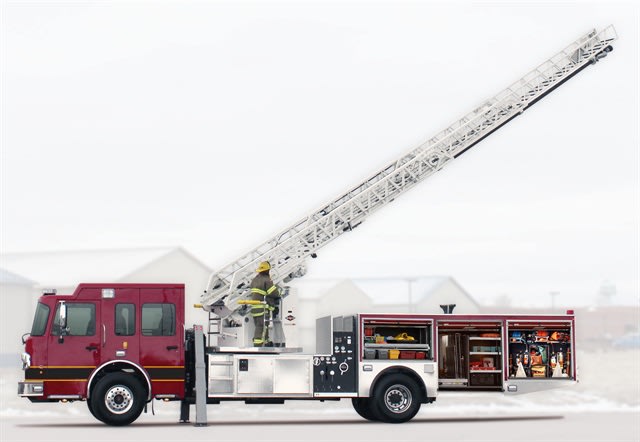The MPA 65' aerial (equipped for elevated operations) comes equipped with a three-section, 65-ft. lightweight, aluminum ladder on a single axle, multi-axis aerial control, an automatic ladder leveling system, and envelope controls to simplify setup and enhance safety, the company stated.