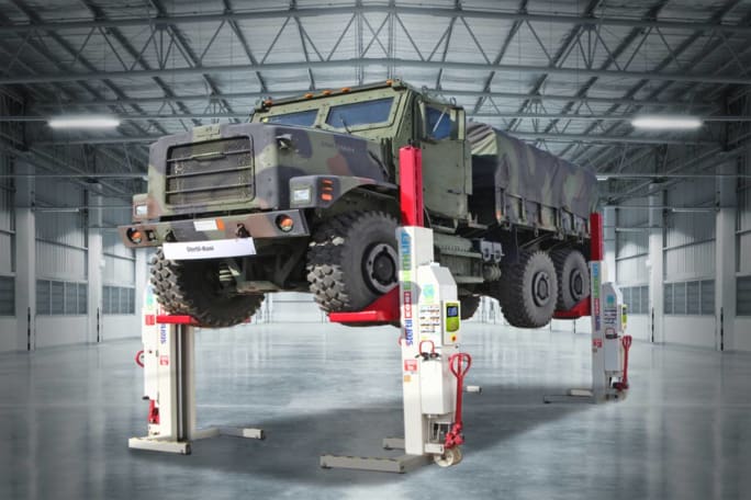 Stertil-Koni fully embraces this mission by delivering lifting systems, well regarded for their power, safety, durability, and efficiency – and engineered to service light, medium, and heavy tactical vehicles. Dr. Jean DellAmore, president of Stertil-Koni, stated, “All of our heavy duty vehicle lifts feature state-of-the-art hydraulic technology, are manufactured with high quality, high tensile DOMEX steel for maximum strength, and deliver fast lifting and lowering.”