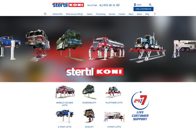 Heavy-duty vehicle lift leader Stertil-Koni has launched a new fully responsive company website showcasing the latest innovations in heavy-duty vehicle lifting systems and related shop equipment and accessories for the North American marketplace.