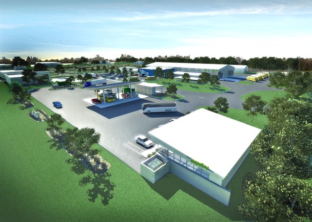 Pictured is a rendering of the CNG fueling facility, which will be have three dispensers initially and the ability to add two more. Image courtesy NoPetro.