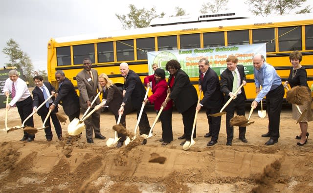 Officials from Nopetro and Leon County Schools, as well as other public officials, celebrate the groundbreaking of the construction of the CNG fueling station. Image courtesy NoPetro.
