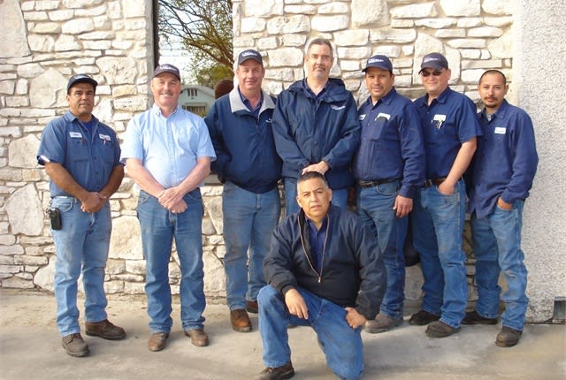 Pictured are fleet staff from the City of New Braunfels (back row, l-r): Fernando Herrera, fleet technician; Jon Pilgrim, fleet manager; Jon Matocha, senior fleet technician; Russell Trevino, parts technician; Cesar Garza, assistant fleet technician; Shane Knudson, fleet technician; Rojelio Torres, assistant fleet technician; and (kneeling) Jose Lopez, assistant fleet technician.