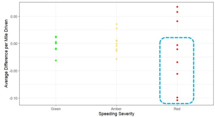 Speeding (Change in alerts per mile driven after alerts engaged).