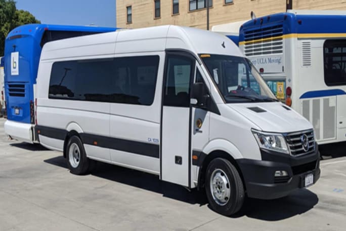 The first two GreenPower EV Star Min-E shuttles ordered by UCLA Transportation are being used by UCLA Health and are transporting patients and visitors, as well as staff and faculty working at the medical centers. The third unit will be used for Bruinaccess, a complimentary paratransit service provided by UCLA for qualified individuals curb to curb rides from most points on or near campus.