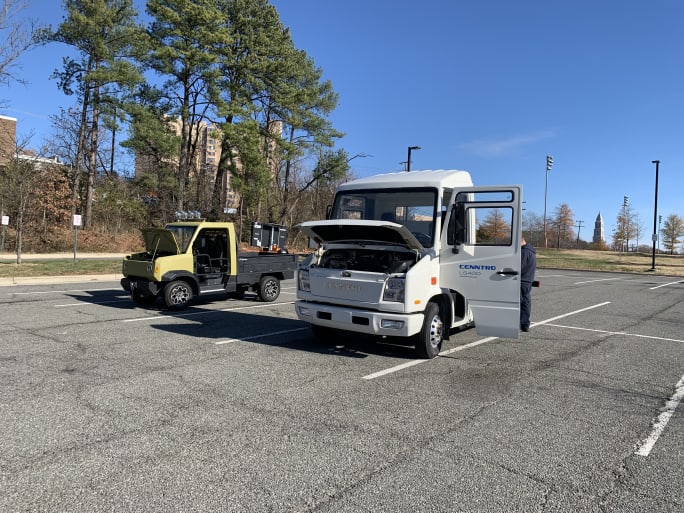 A Mack Electric Refuse Truck, a Ford ETransit, and a Cenntro All Electric Truck chassis were among the vehicles available for attendees to test drive.
