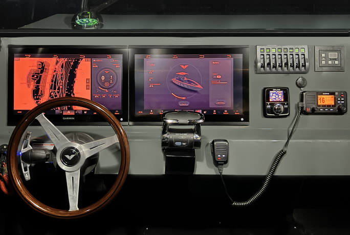 For enhanced situational awareness in low-light conditions, it features a fixed-mount FLIR thermal night vision camera. Additionally, a secure dry storage area near the helm is designed to accommodate marine flares as well as both lethal and non-lethal weapons.