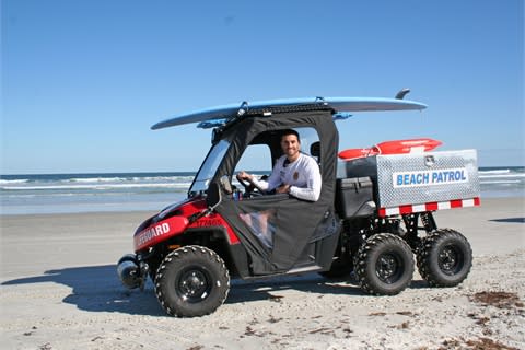 DELAND, FL – Volusia County is using two new “utility task vehicles” (UTVs) for its Beach Patrol officers instead of the pickup trucks it used previously. The vehicles are Ranger UTVs manufactured by Polaris.