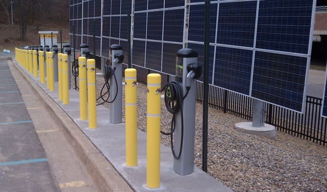 Western Michigan University's 15 new electric vehicle charging stations and a solar array were partially funded by a $700,000 grant from the CEC. Photo courtesy of the CEC.