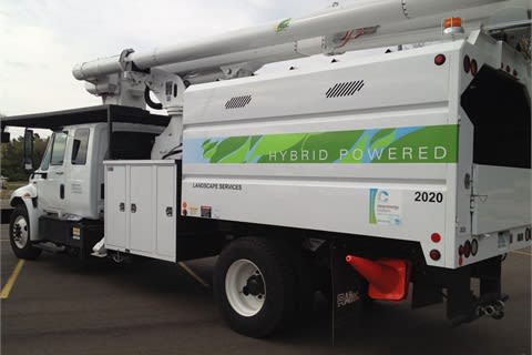 The hybrid truck An electric-powered arm on the hybrid lift truck eliminates idling when the vehicle is stopped and the arm is in use. Photo courtesy of the CEC.