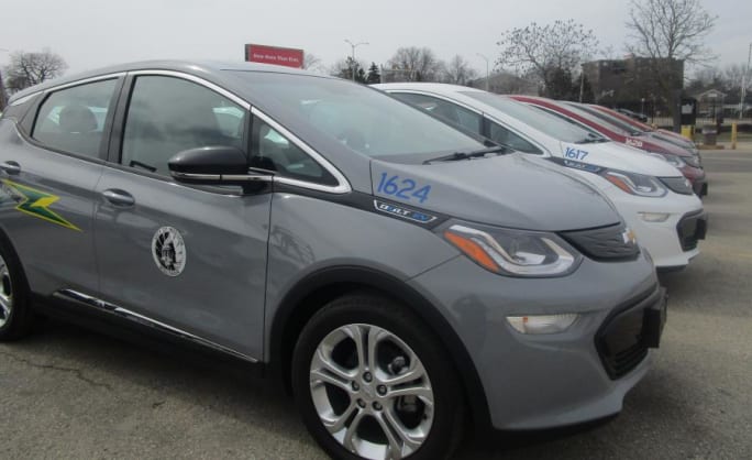 The city has various EV makes and models, including Chevy Bolts, like the ones pictured here.