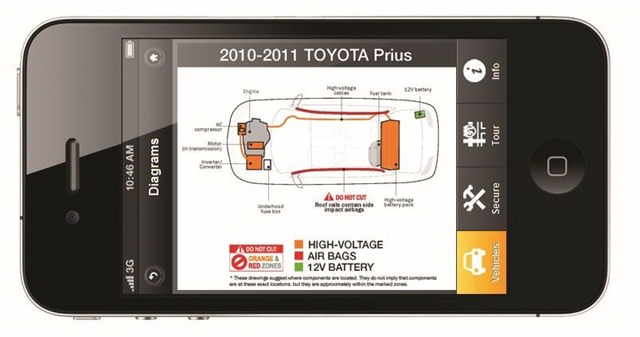Davis said the QRG app, which is free, provides detailed, vehicle-specific information including identification mechanisms, disconnect procedures, and other special concerns.