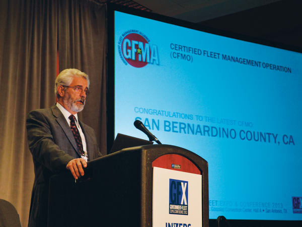 Roger Weaver accepted a crystal trophy for the San Bernardino County, Calif., fleet for attaining Certified Fleet Management Operation certification.