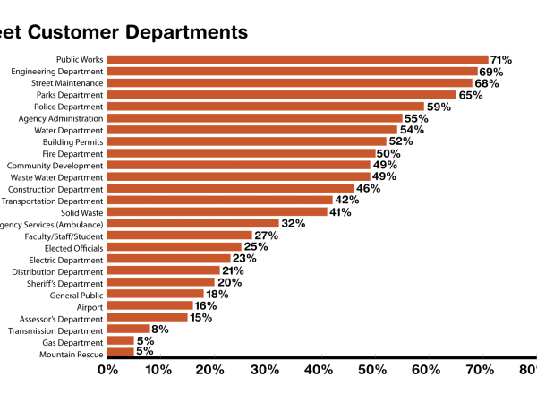 Fleet respondents serve various customer departments, the most common of which is Public Works.