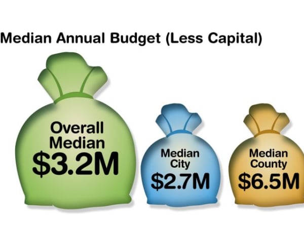 County fleets report having larger budgets than city fleets. Other totals are not calculated due to insufficient funds.