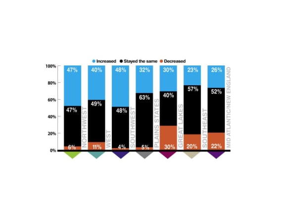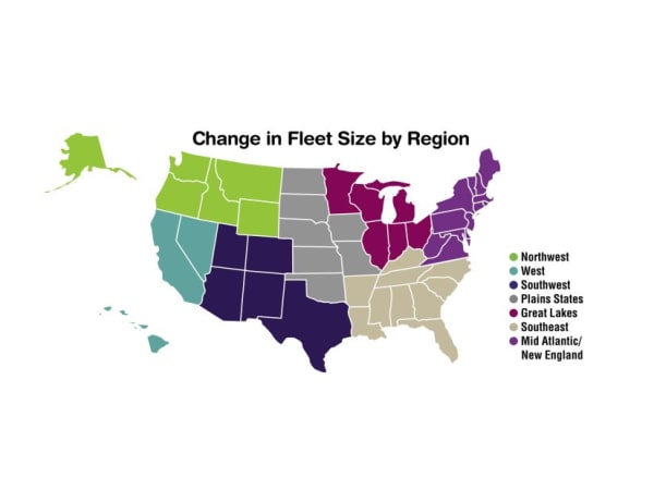 Survey respondents in the western states reported more increases in fleet size than those in other regions.