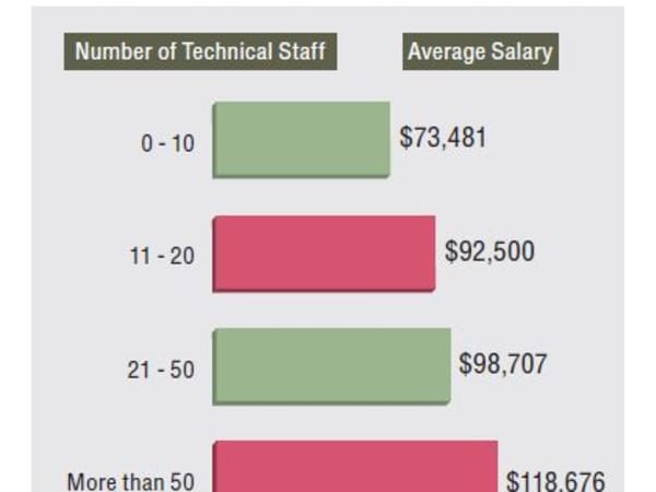 Those managing more technical staff are paid more on average.