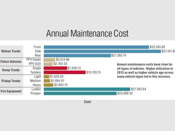 Annual maintenance costs have risen for all types of vehicles. Higher utilization in 2015 as well as higher vehicle age across many vehicle types led to this increase.