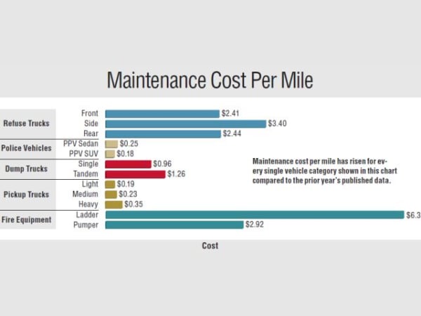 Maintenance cost per mile has risen for every single vehicle category shown in this chart compared to the prior year's published data.