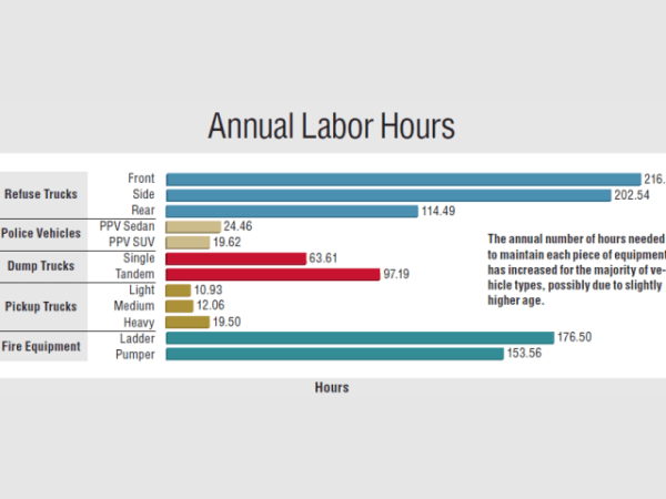 The annual number of hours needed to maintain each piece of equipment has increased for the majority of vehicle types, possibly due to slightly higher age.