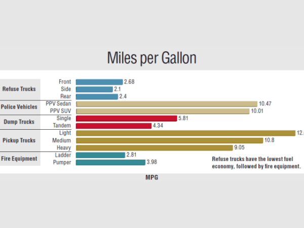 Refuse trucks have the lowest fuel economy, followed by fire equipment.