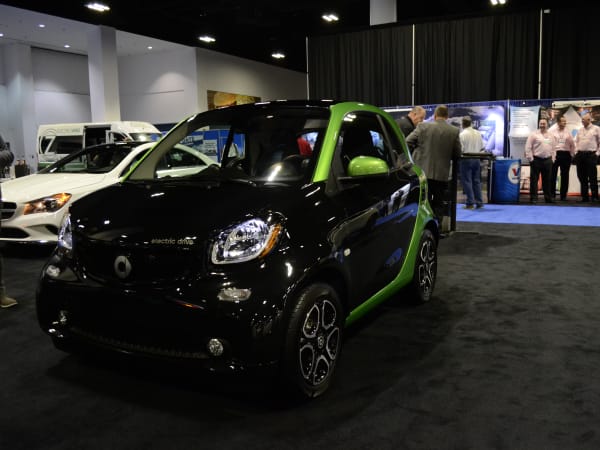 The Mercedes smart electric vehicle has a range of 68 miles in combined driving cycles.