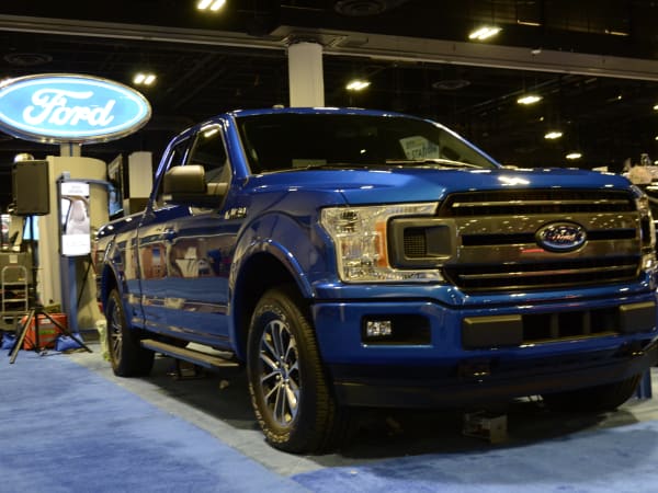 The 2018 F-150 (prototype shown) includes fleet-exclusive features such as a backup alarm system, black step bars on the XLT, engine block heater, and LED warning strobes.