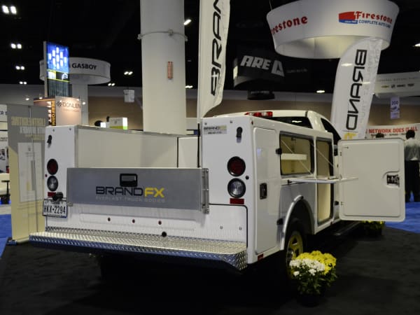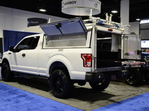 A.R.E. featured a new heavy-duty aluminum commercial cab DCU, pictured here on the Ford F-150.
