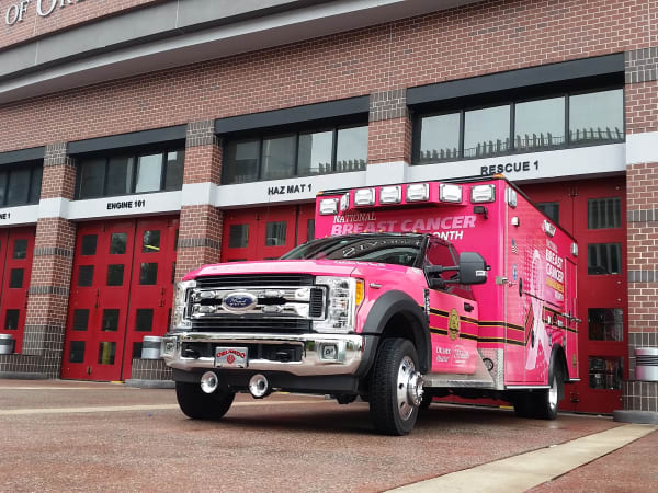 Spreading awareness is a citywide effort in Orlando, Fla. The Orlando Fire Department unveiled two pink trucks for the cause. Photo by Robert Lee Shaffer
