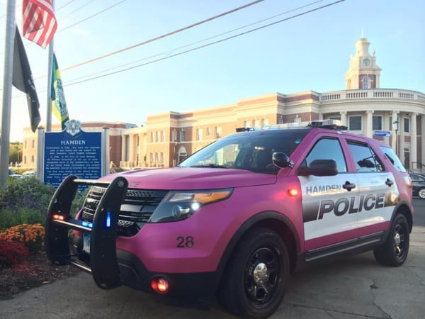 The Hamden Police Department (Conn.) unveiled this patrol vehicle as part of 'Paint Hamden Pink,' a citywide initiative with the American Cancer Society to raise breast cancer awareness. Photo courtesy of Hamden Police Department