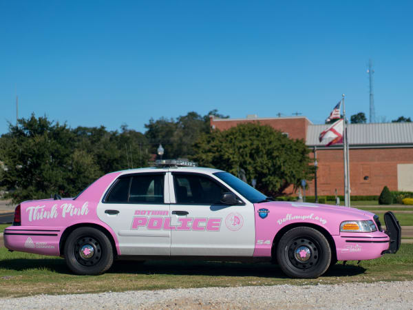 The Dothan Police Department in Alabama unveiled this bubblegum pink wrapped cruiser to participate in the American Cancer Society's "Real Men Wear Pink" campaign. Photo: Scott Kennedy/Kennedy International Studios