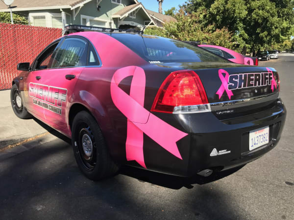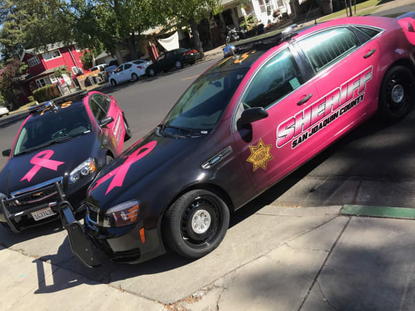 For 2017, the San Joaquin County Sheriff's Office chose a bolder pink ribbon on the hood of the car and a similar color scheme from the year before. The graphics were again installed by Original Mobile Graphics. Photo courtesy of Avery Dennison