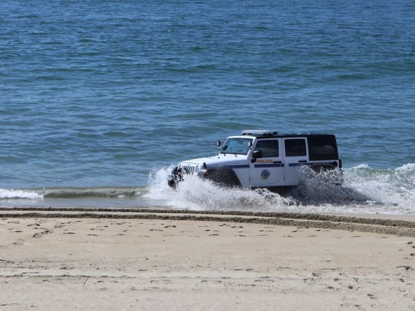 Power is necessary when patrolling on sand and through water. For the City of Long Beach Marine Patrol, four wheel drive is essential. Photo courtesy of City of Long Beach