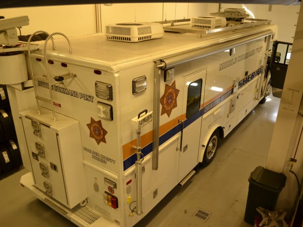 The Sheriff's Office purchased this mobile command post in 2008. It is built on a Freightliner chassis.