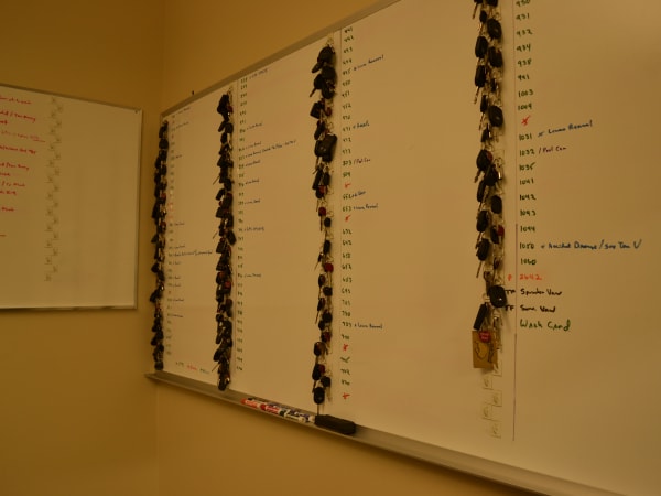 This vehicle key and status board allows staff to keep track of its vehicles.