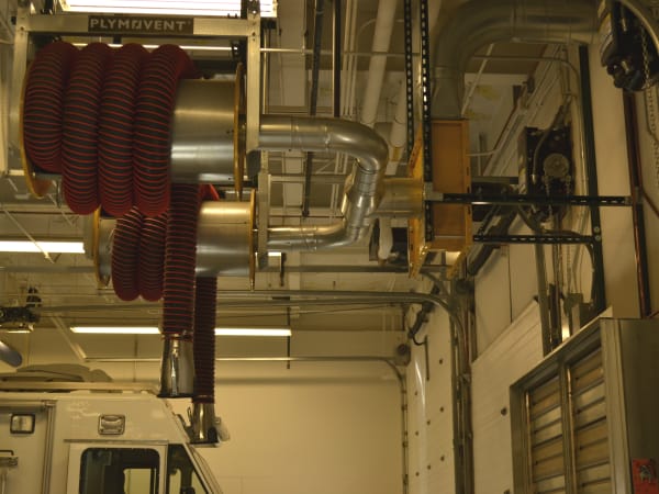 Vehicle exhaust hoses allow technicians to safetly work on vehicles inside the shop.