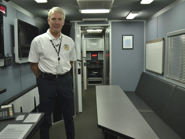 Vrtis has worked at the Sheriff's Office fleet for 16 years. He's pictured here inside the mobile command post.