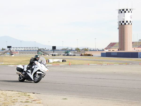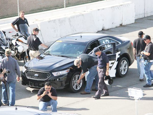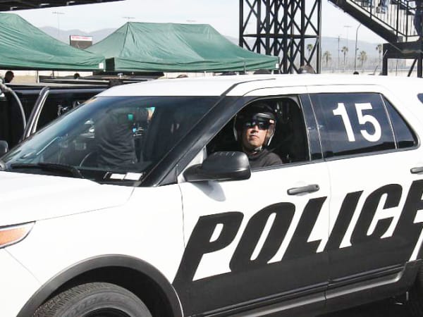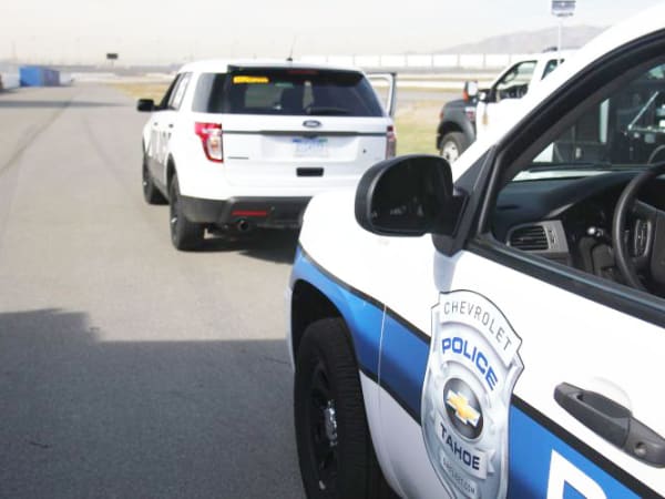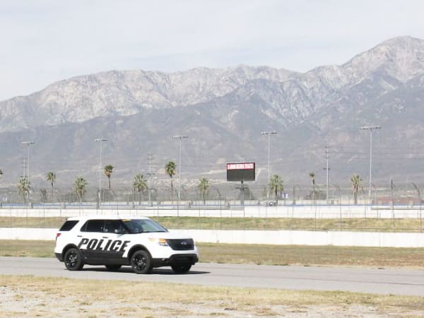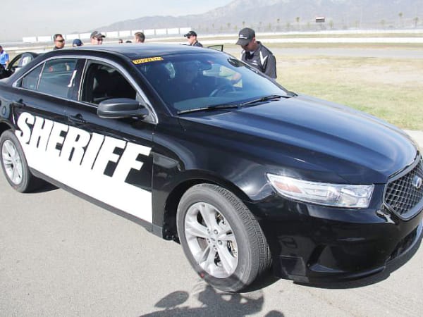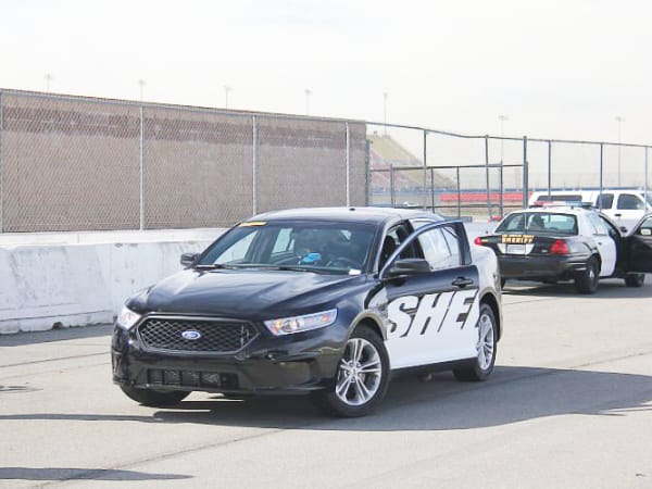 A LASD deputy rolls the Ford P.I. Utility EcoBoost toward the road course for testing.