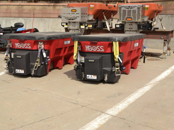 These spreader inserts go into the town's 1-ton trucks. When the snow gets over four inches deep, the smaller trucks are deployed in the neighborhoods.
